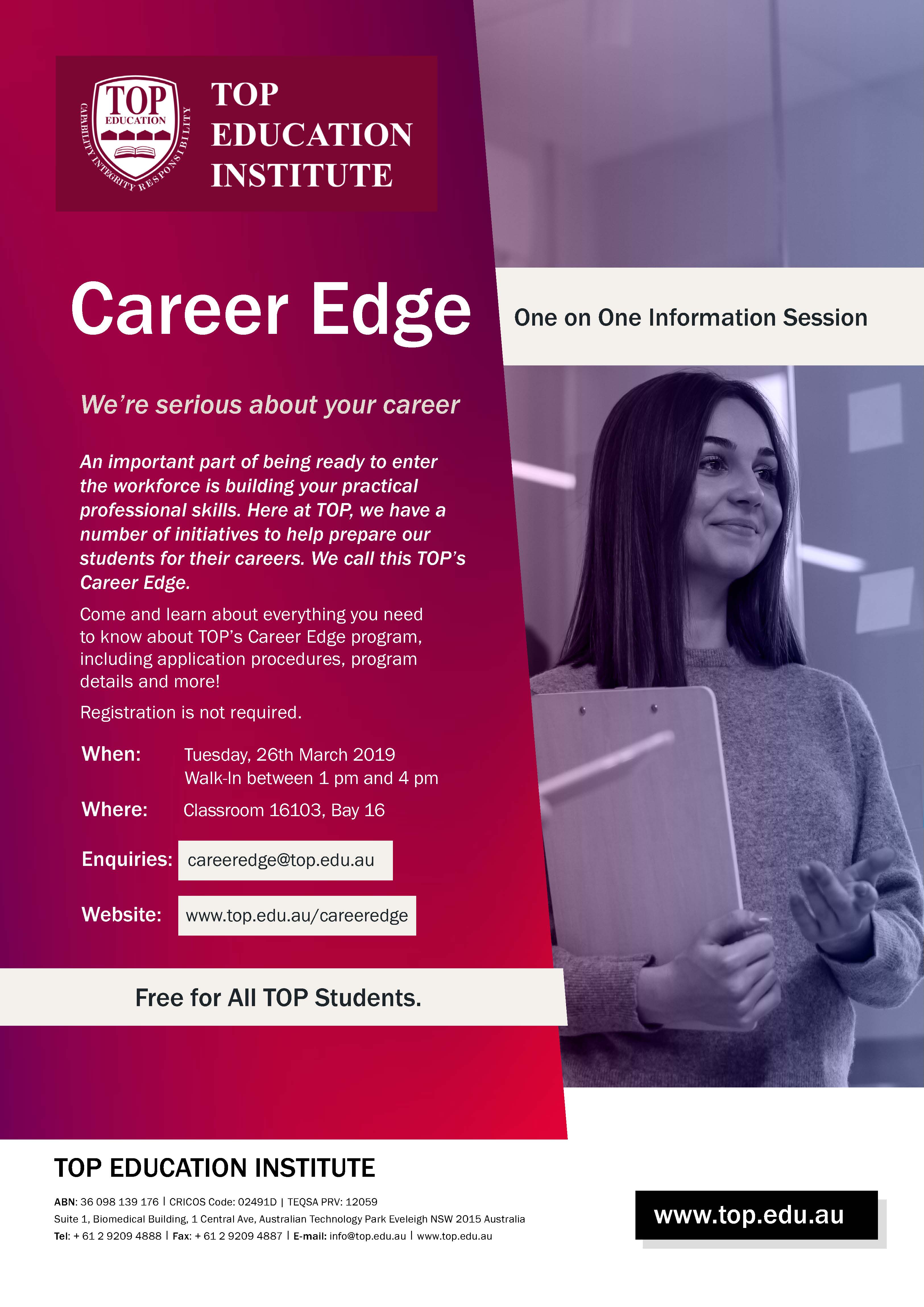 Come and learn about everything you need to know about TOP’s Career Edge program, including application procedures, program details and more!